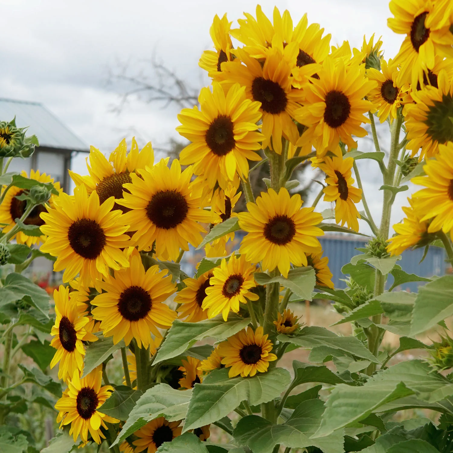 Concert Bell sunflower brings big drama to the garden with its unique, vertical display of bright golden blooms. This AAS-winning, branching variety is pollenless and produces multiple clusters of 10 to 12 flowers per stem, creating an impressive tower of color. Each bloom measures about 4 ½ inches across, and plants easily reach 5 feet tall or more. In addition to its showy performance, Concert Bell is remarkably sturdy and stands tall even in stormy weather. A true star that delivers a head-turning display all summer long.