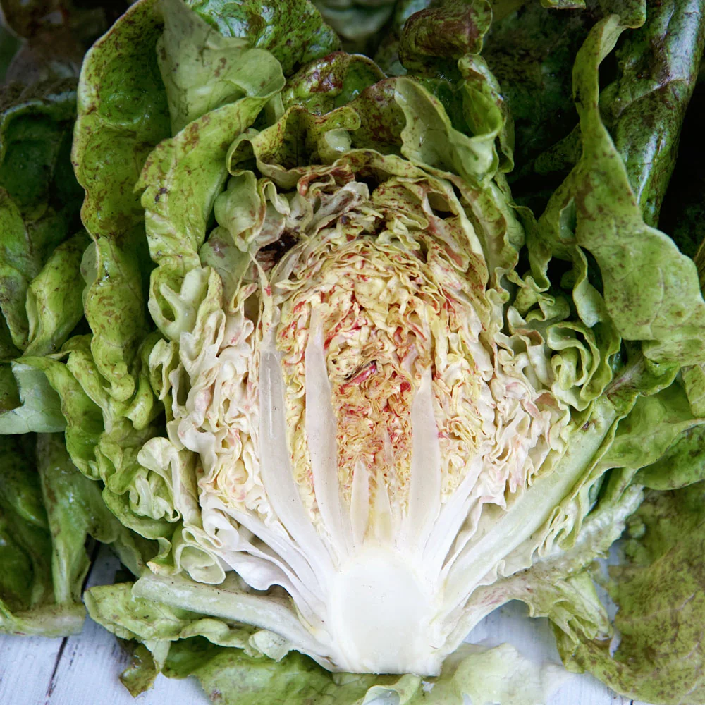 45–50 days. A darling of a butterhead, Daisy Lambert's dense, 6 inch heads of extremely soft and supple, light green leaves are speckled in rosy-red to the core. Crops of compact-framed plants lend themselves to tight planting and high yields of these gorgeous, tender greens. A superb choice for small gardens, raised beds and container planting.